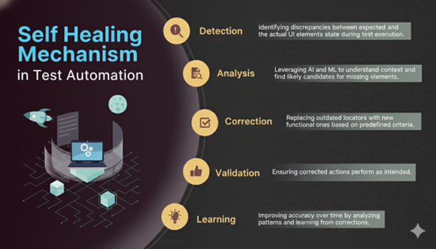 Self-healing test automation learns from every update and correction and keeps improving its ability to adapt better, predict issues, and address them.